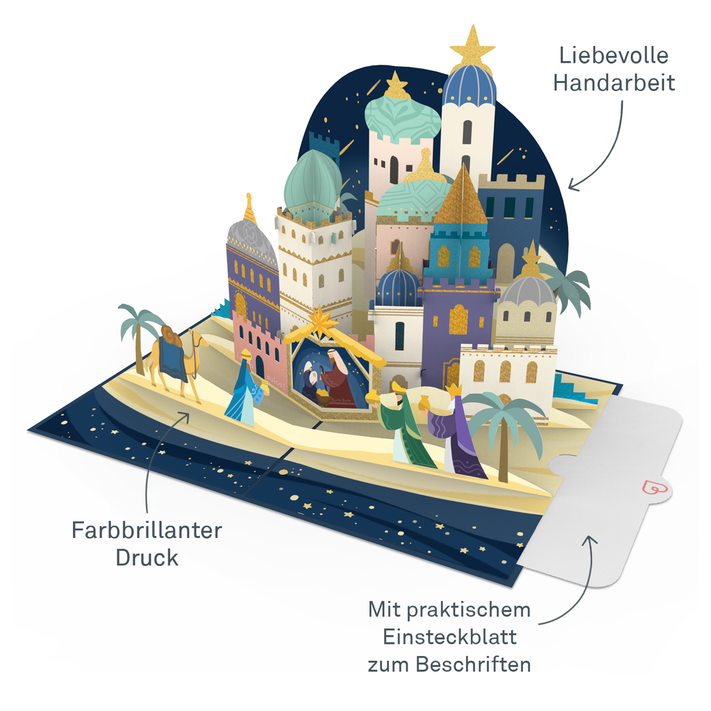 Kennst du schon unseren Sparpreis? Beim Kauf von 5 beliebigen Pop-Up Karten zahlst du nur 39,00 Euro – inkl. Versand zu dir nach Hause. Der Rabatt wird automatisch abgezogen, sobald du 5 Artikel in deinen Warenkorb gelegt hast.