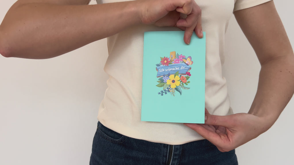 Füge Text, Foto oder Video hinzu. Die personalisierte Karte senden wir zu dir nach Hause oder direkt an deinen Wunschempfänger.