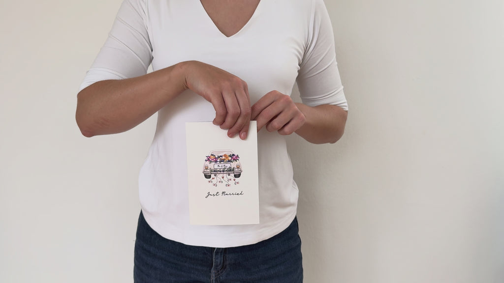 Hochzeitsauto mit "Just Married" Girlande Pop-Up Karte